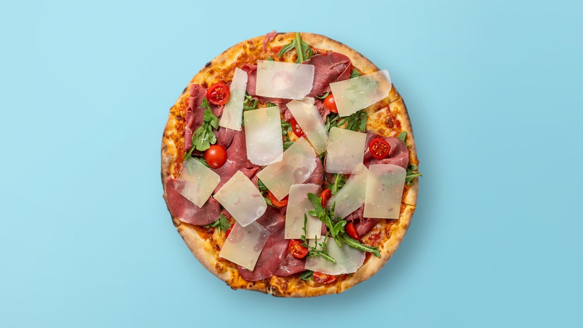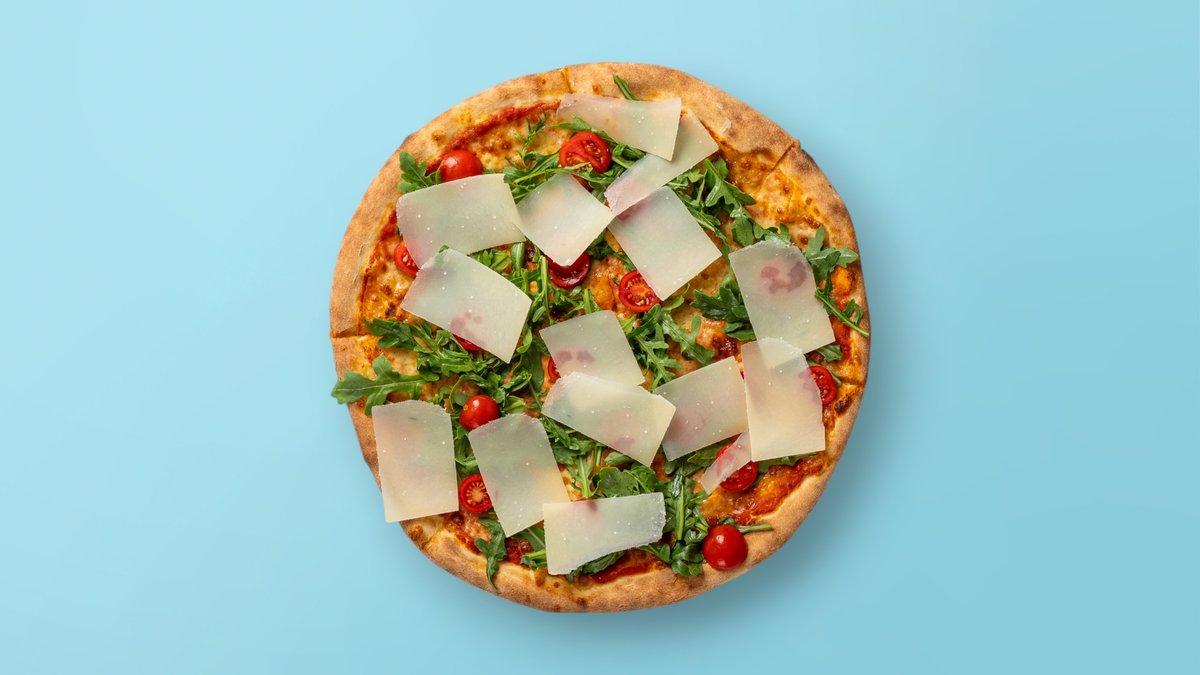 Salcë, mozzarella, pancetë, rukola, pomodorini, grana