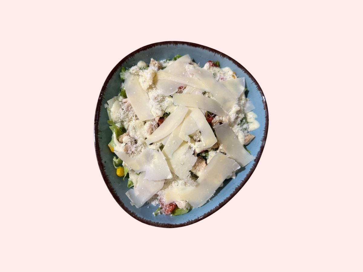 Sallatë iceberg, fileto pule, pomodorini, misër,grana, salcë cezari