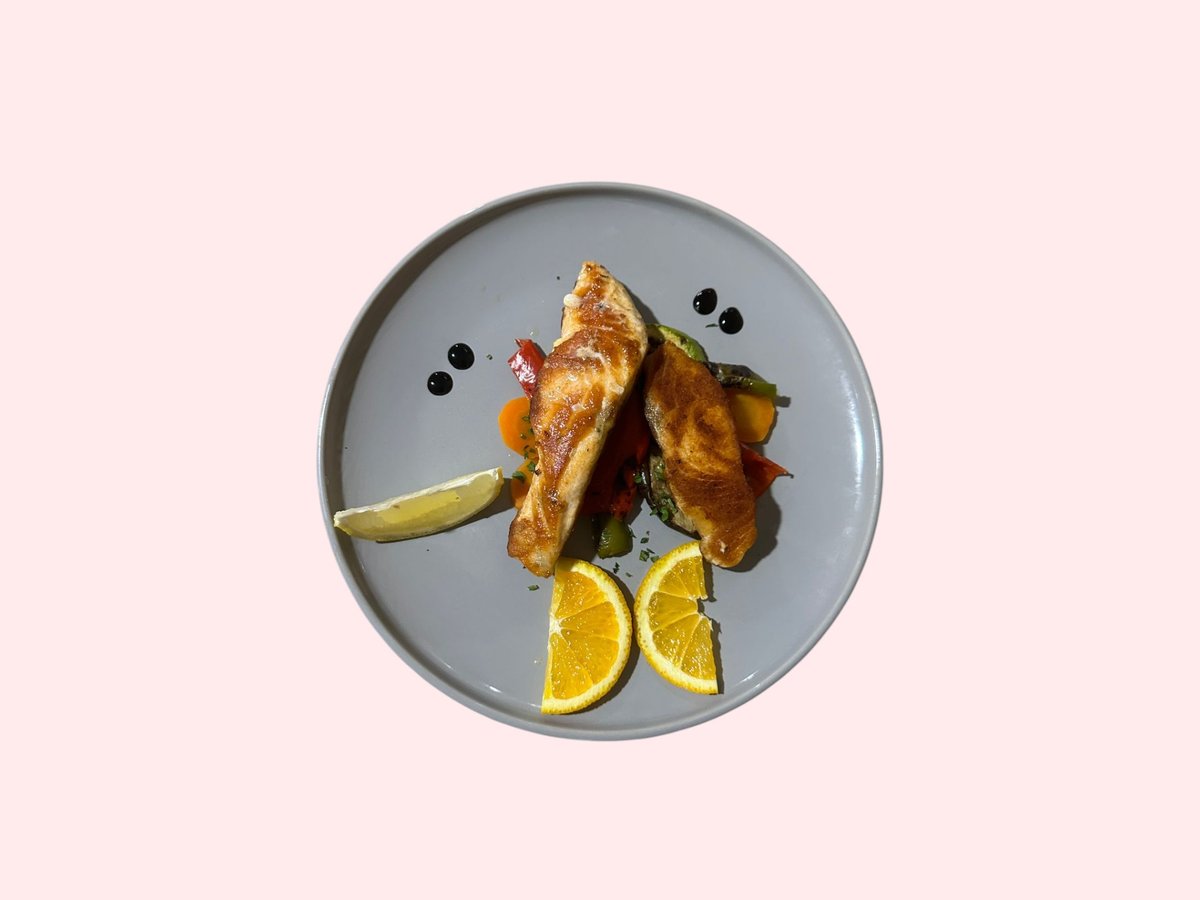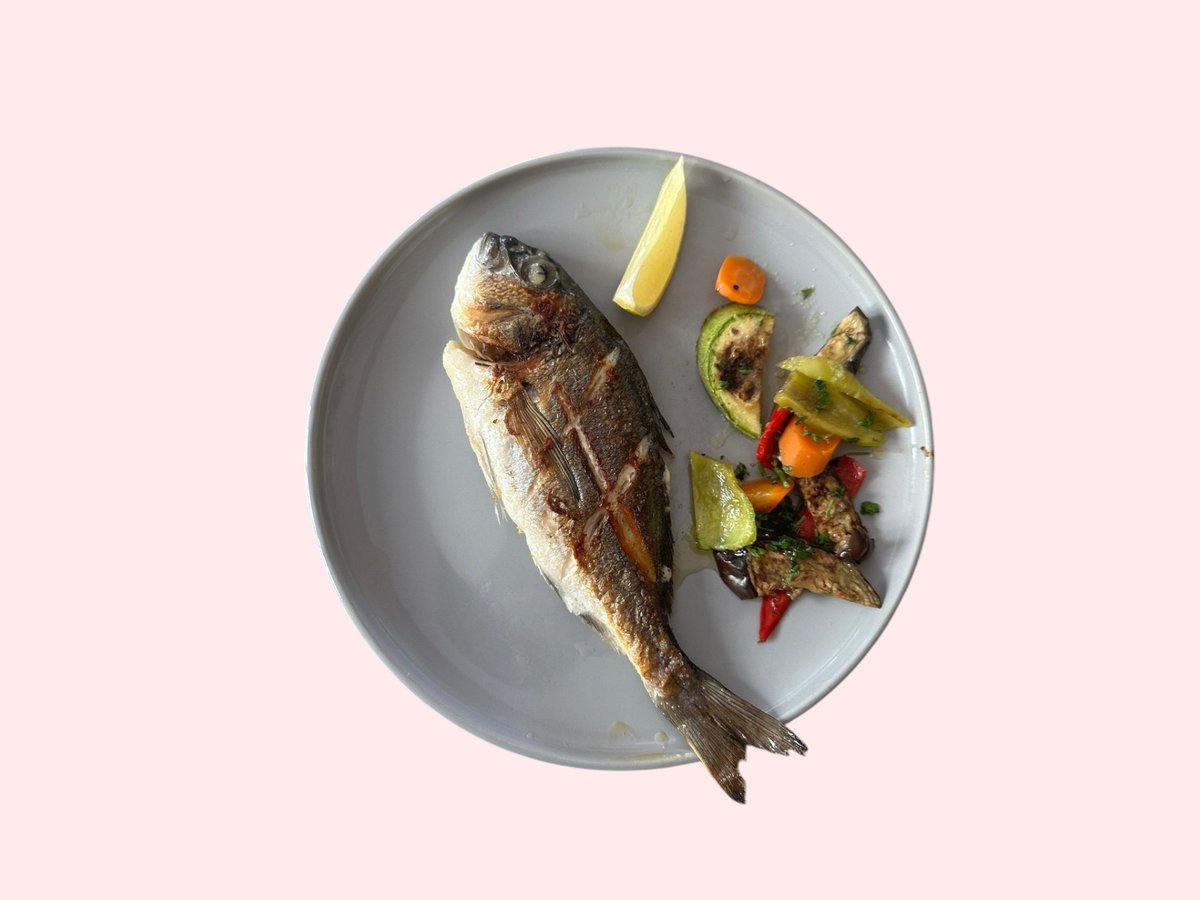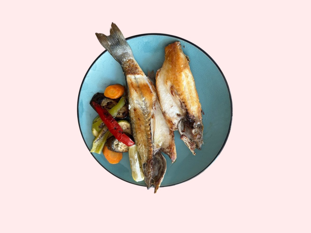 Levrek zgare, perime zgare, speca, karrotë, patëllxhan