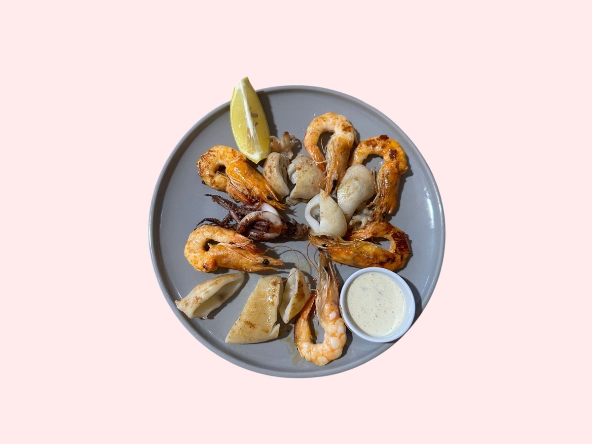 Spie, kallamar, karkalec, midhje, gaforre, salcë e kuqe