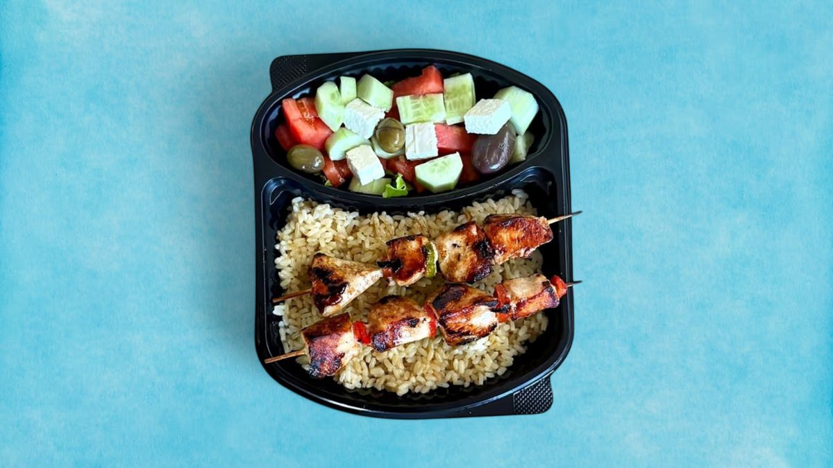 Oriz me leng pule Shishkebab Pule Sallate Greke