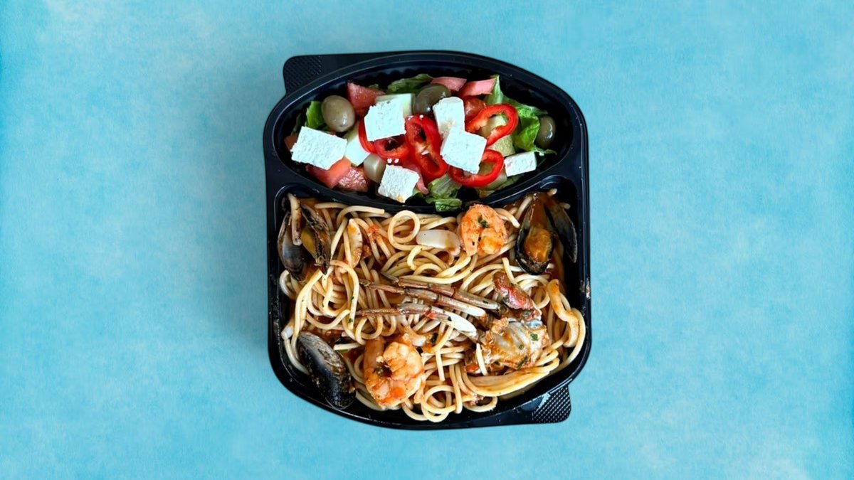 Linguine me Fruta Deti Sallate Greke e fresket