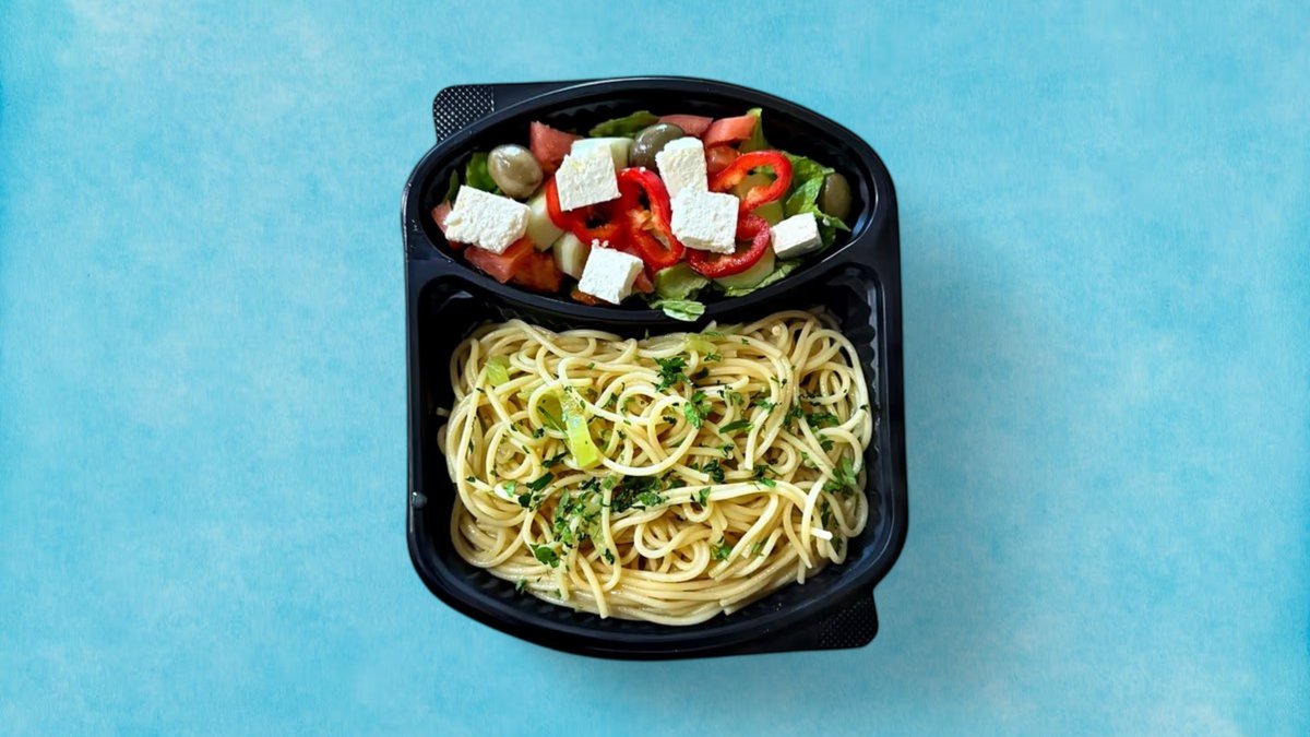 Spaghetti Alla Olio Peperoncino🌶️ & Sallate Greke