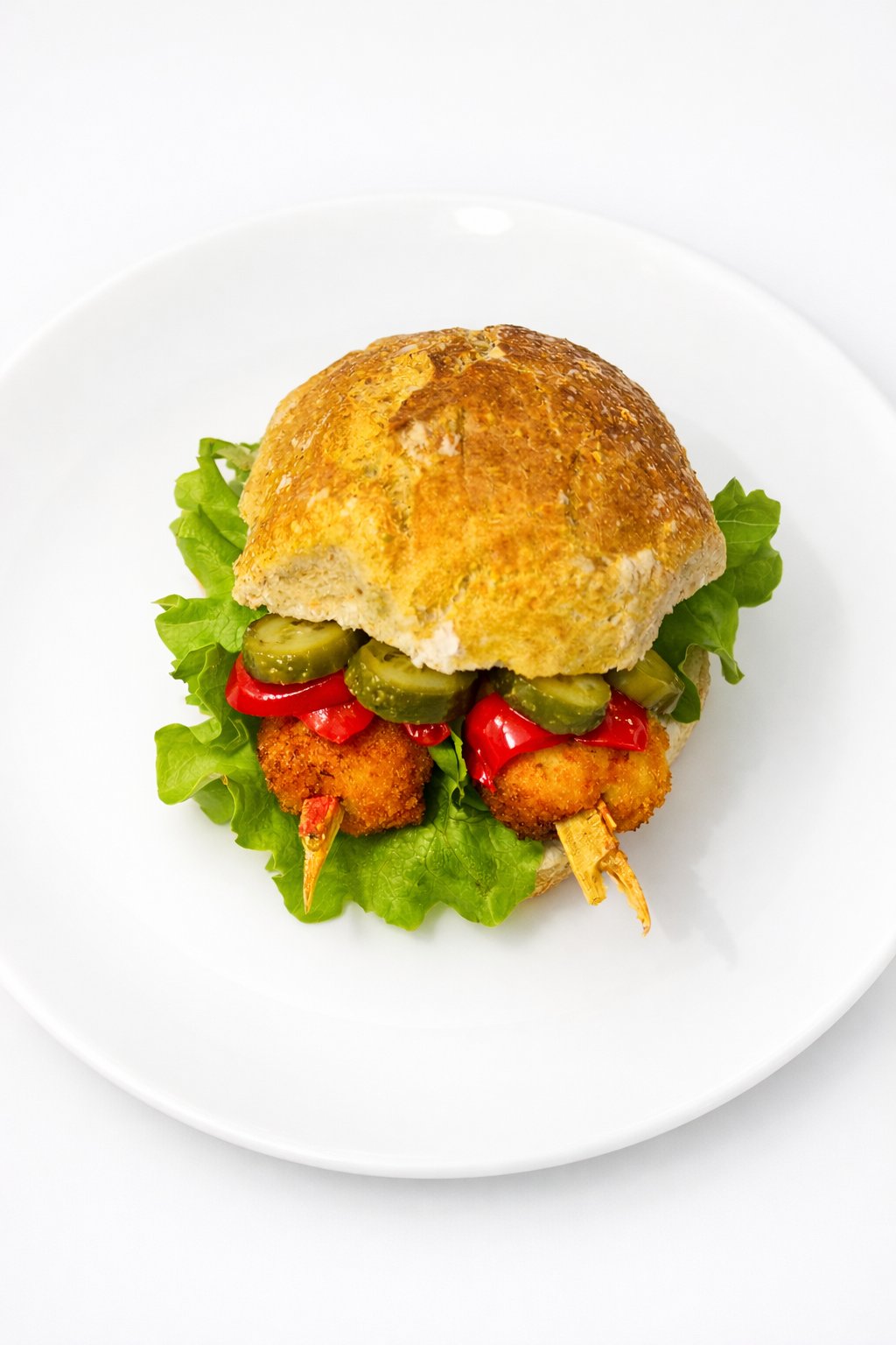 Burger sallat,majonez,speca turshi,trangull turshi,qofte gaforre /ose karkaleca