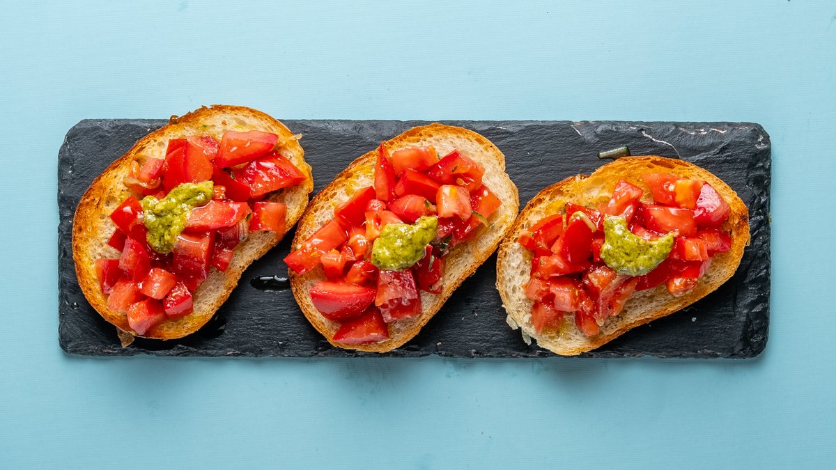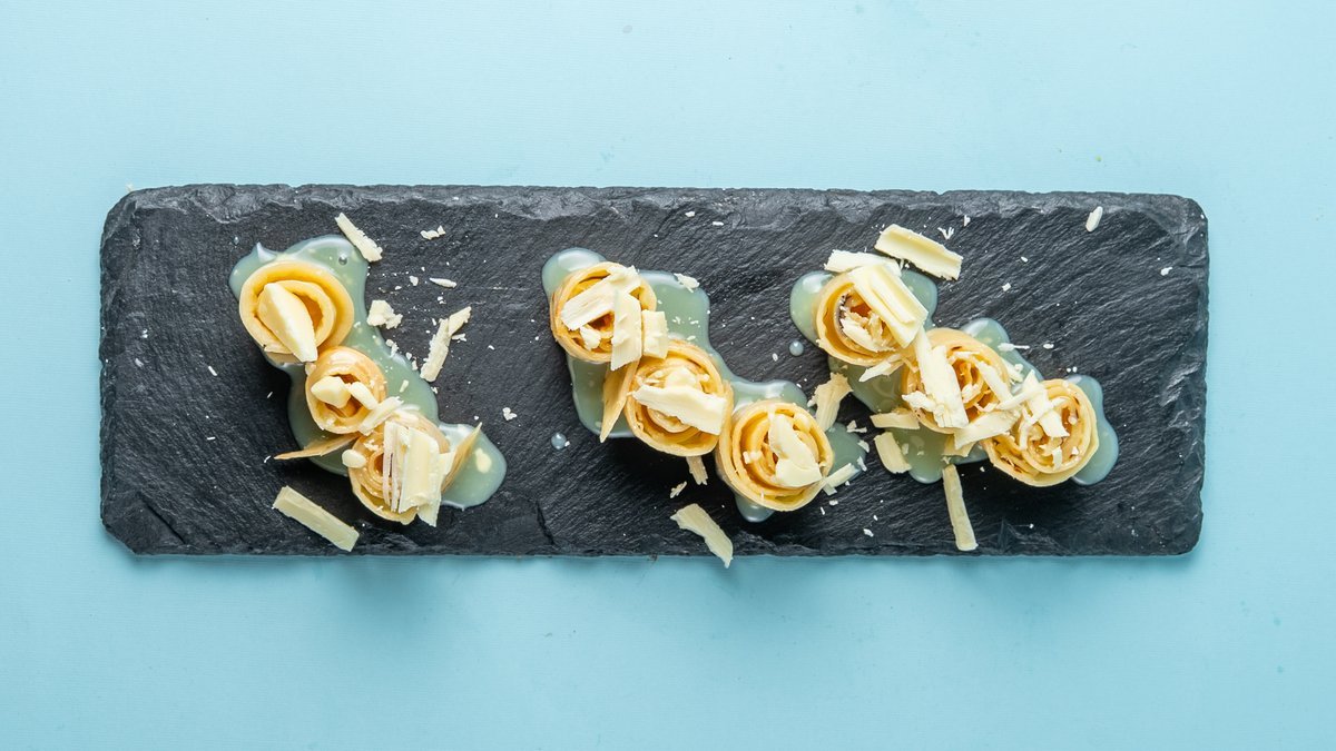 Proshutë gjeli, gouda, stracciatela, pesto, stika