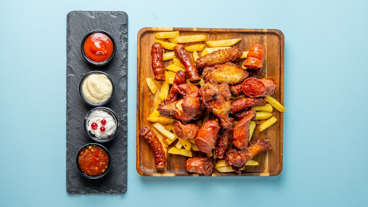 Qofte gaforre, krahë pule, salçice dhe djathë te ndryshëm, patate, salca të ndryshme për 4 persona