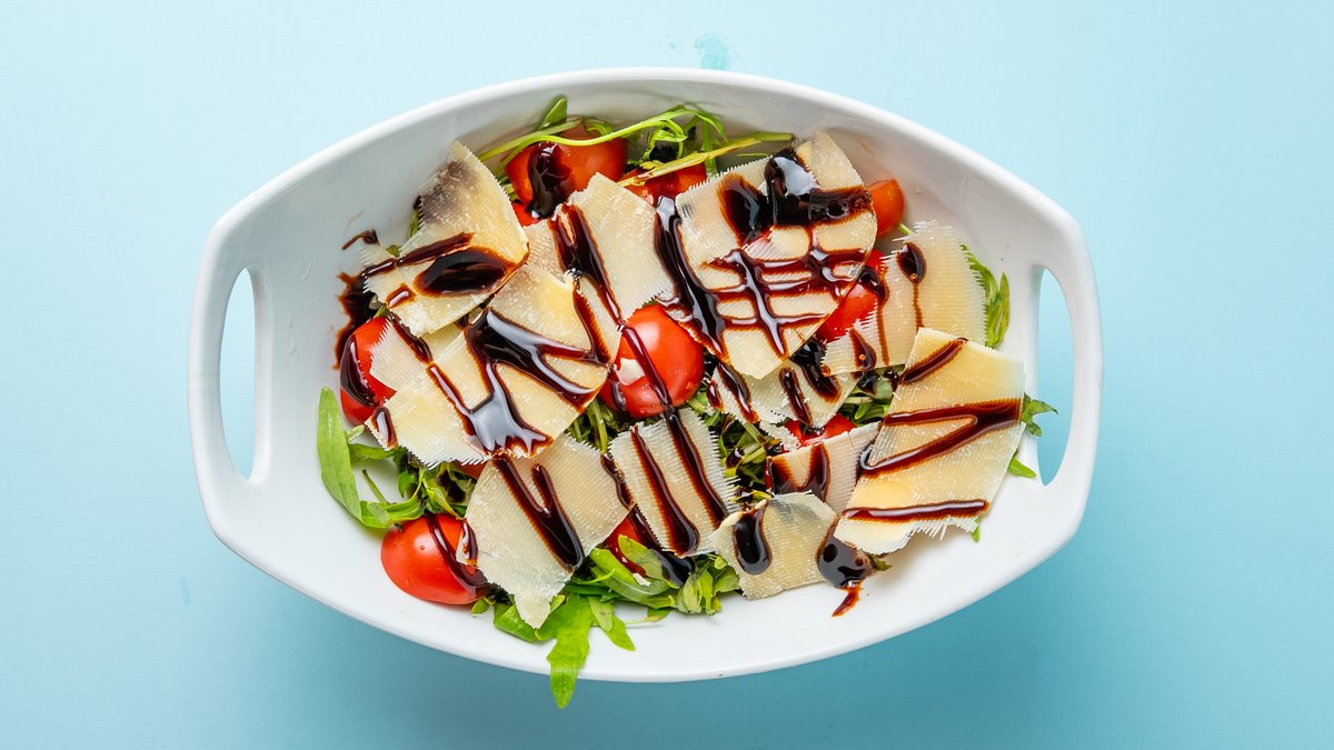 Rukola, proshutë e thatë viçi, mozzarella, pomodorini, philadelphia, pesto