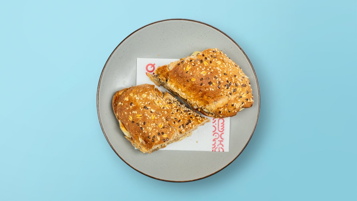 Bukë integrale, djathë guda, proshutë pule, krem djathi