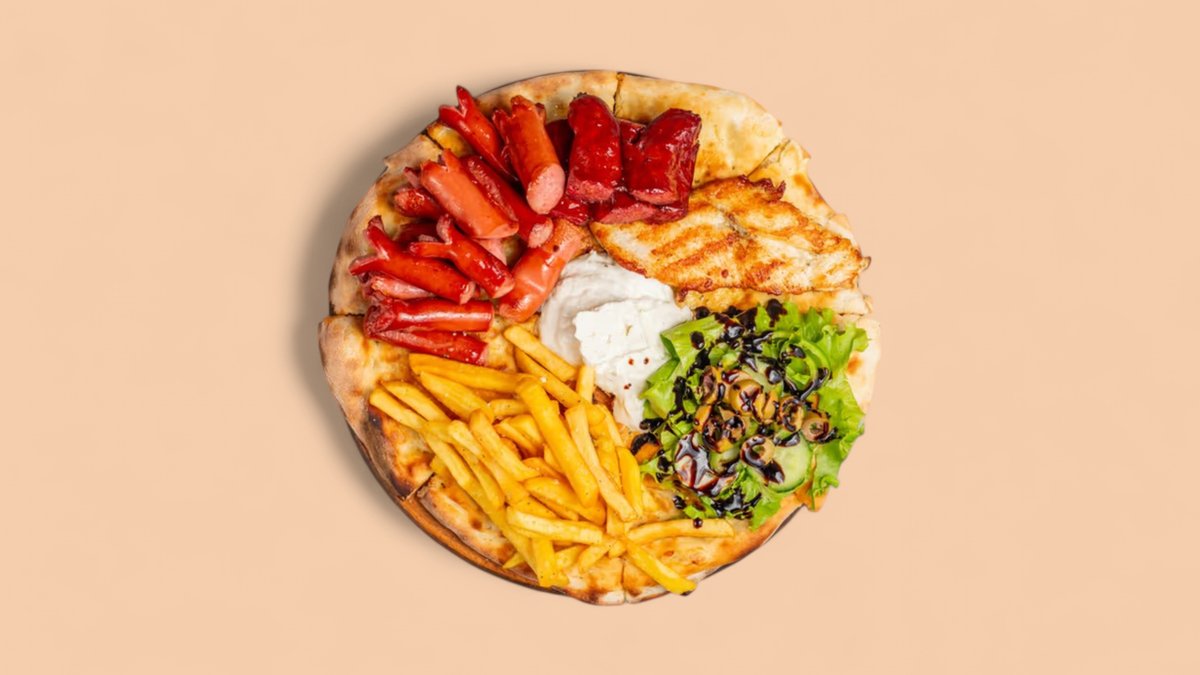 Foccace, 150 gram suxhuk, 150 fileto pule, kremviçe tymosur, salçiçe visler, salcë kosi, patate, sallatë mikse