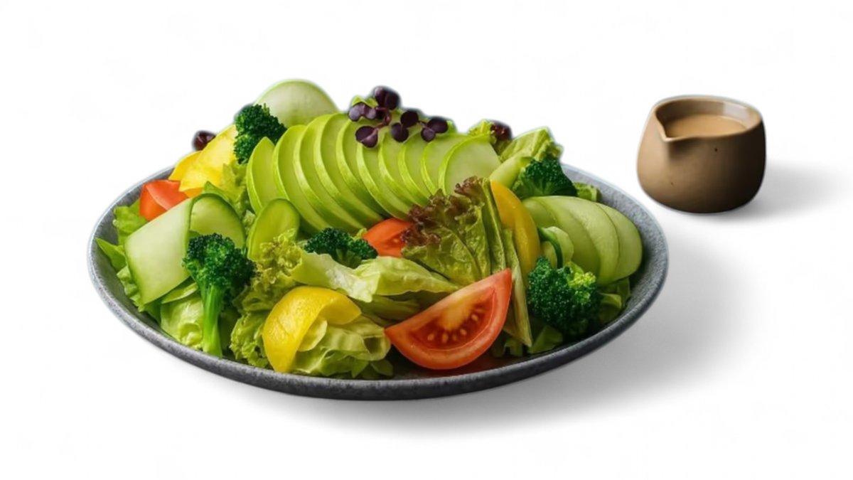 Avokado, domate, sallatë e përzier, rrepë turshi, salcë miso shiro