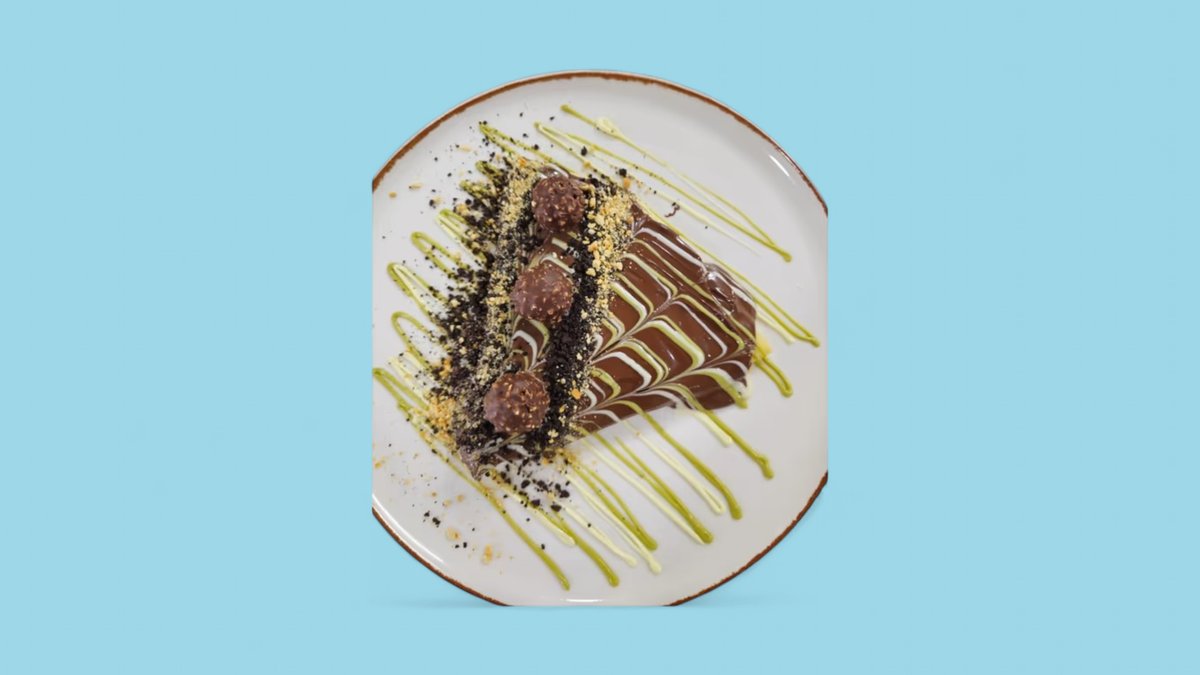 Pistakio krem, çokollatë e bardhë, pistakio e thërmuar