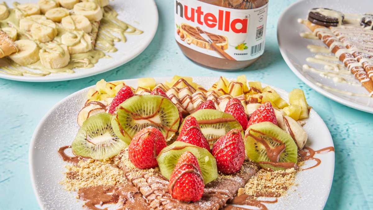 Nutella, luleshtrydhe, banane, kivi, arra, shllak