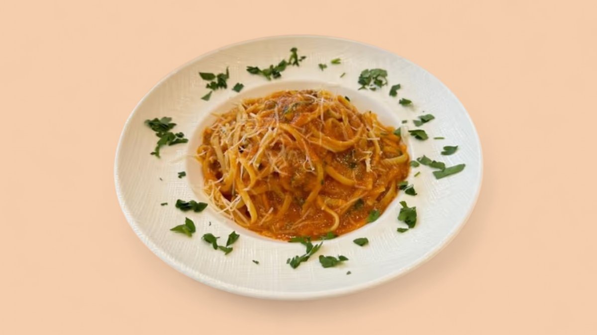 Linguini bolonjeze, sallatë greke, supë pule & panine