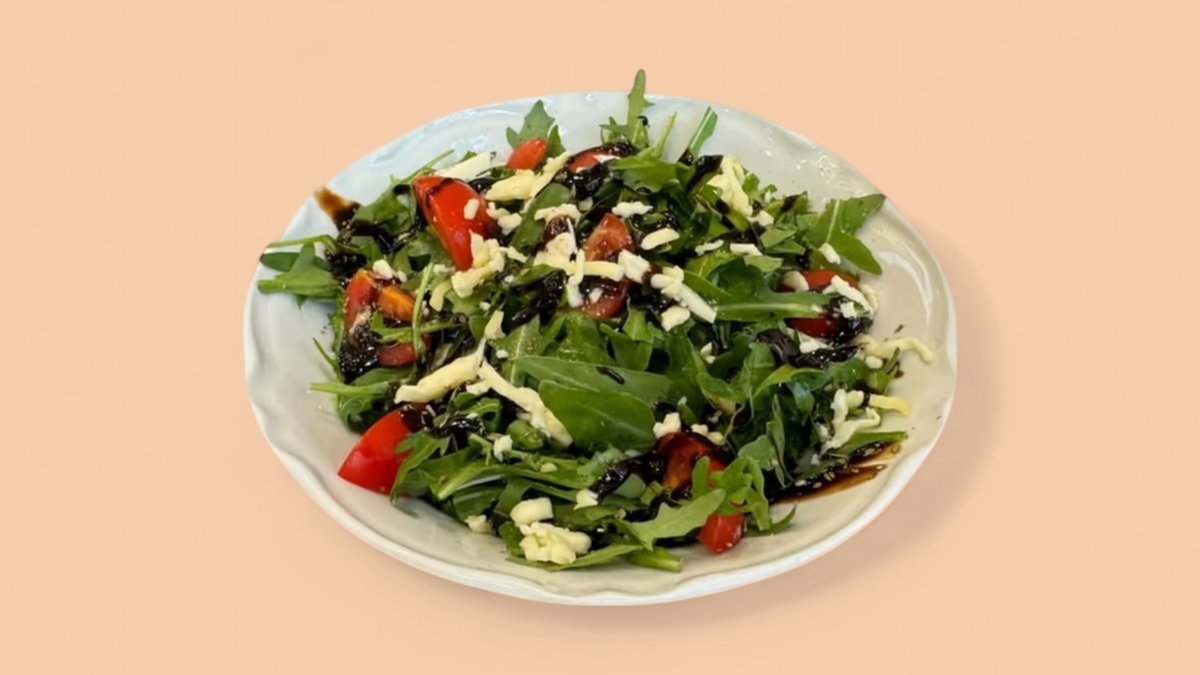 Rukola, djathë, parmigiano, aceto, pomodorini