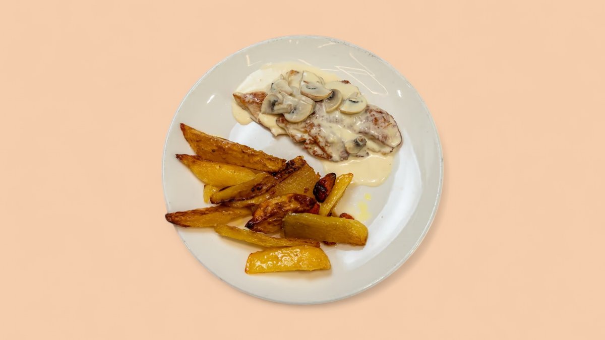 Eskallop Fileto Pule, Panë, Kërpudhë & Patate