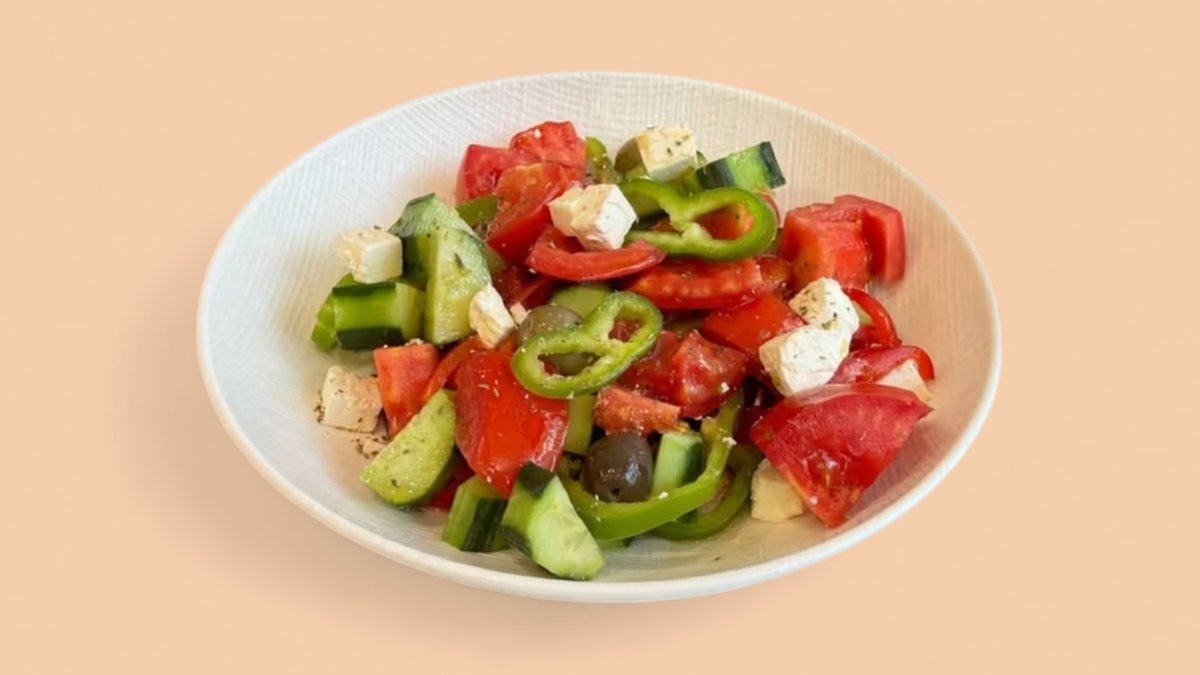 Domate, kastravec, djathë, qepë, ullinj, erëza, speca