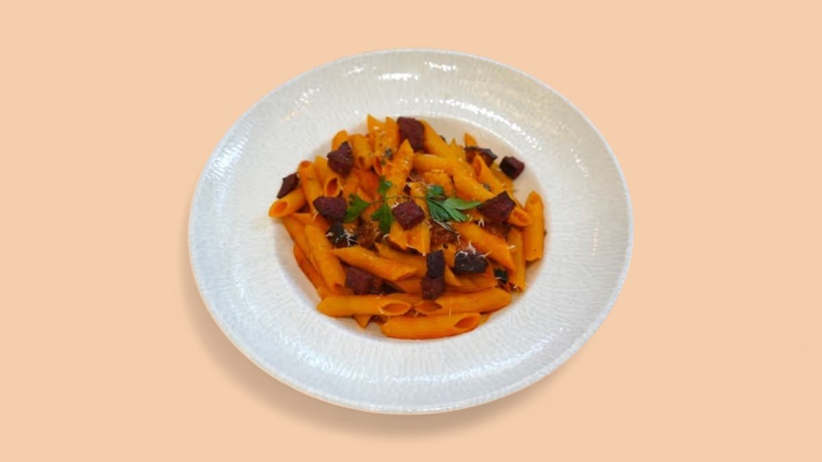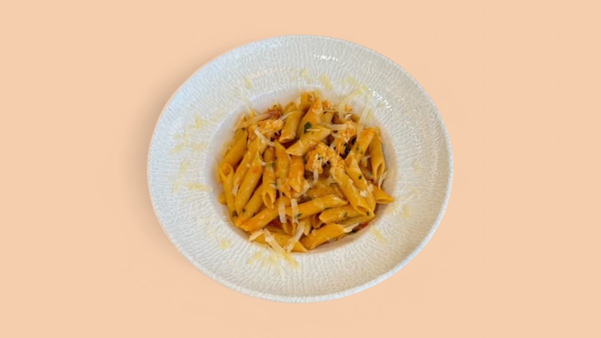 Penne pulë pana, sallatë rukola & panine