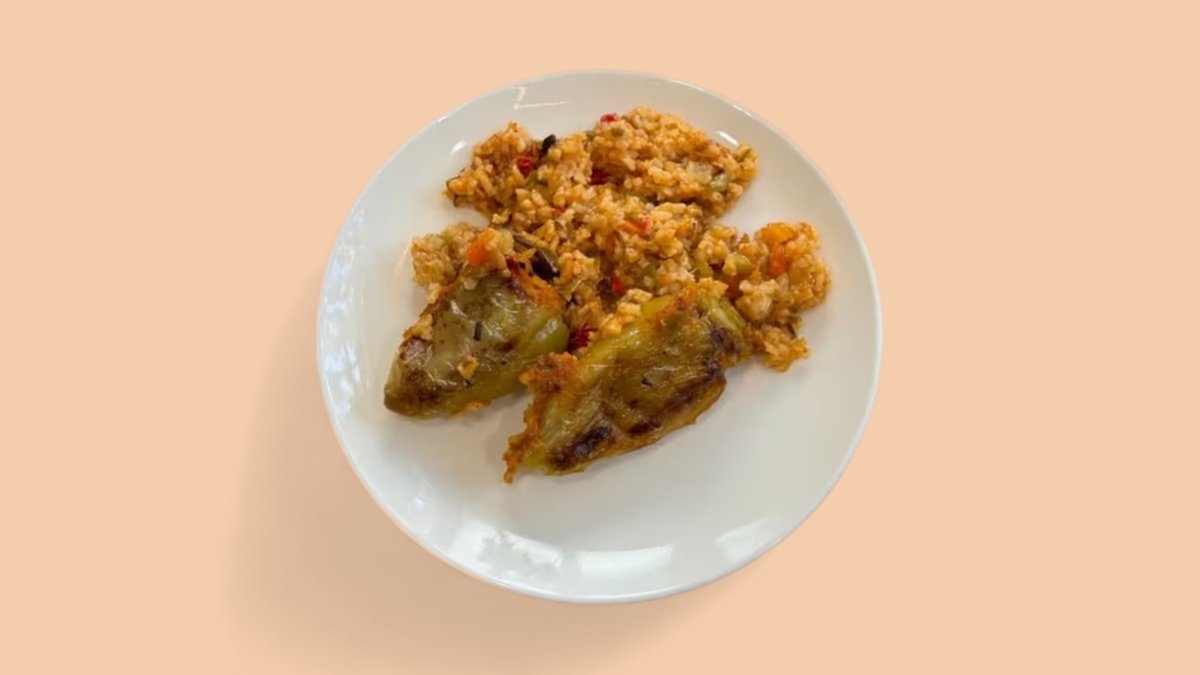 Pilaf me qofte viçi & sallatë jeshile