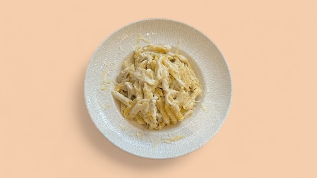 Penne pulë pana, sallatë jeshile, supë pule & panine