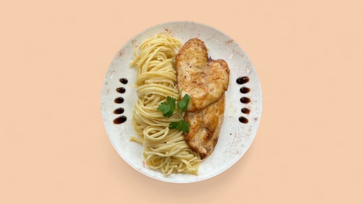 Linguini me gjalp, fileto pule & sallatë jeshile