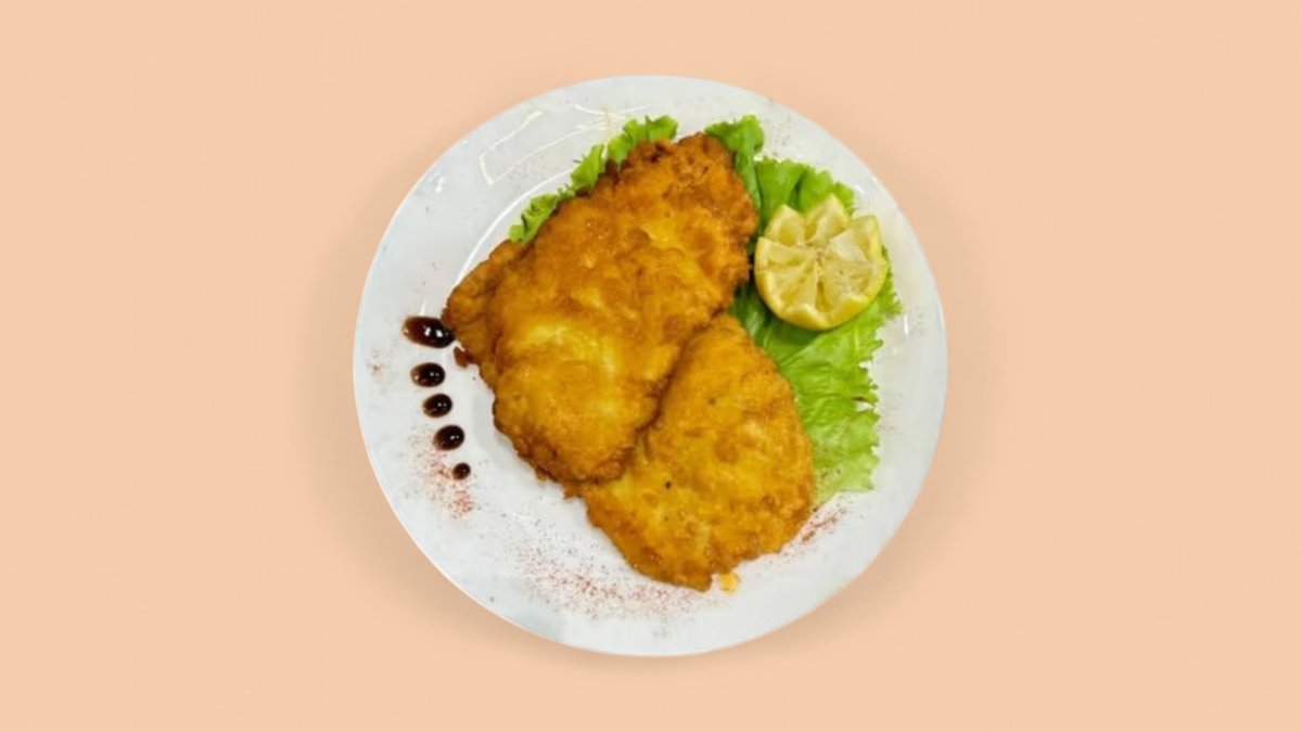 Bukë e thekur, sallatë jeshile, fileto, parmigiano, misër,