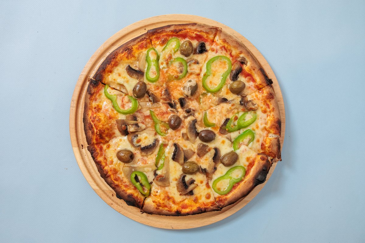 Salcë, mocarela, proshutë, kërpudha, ullinj, speca