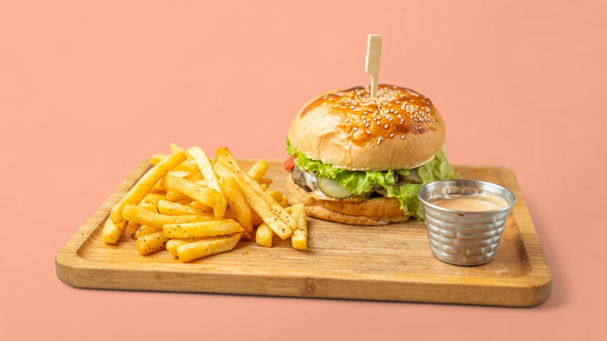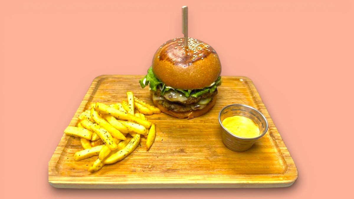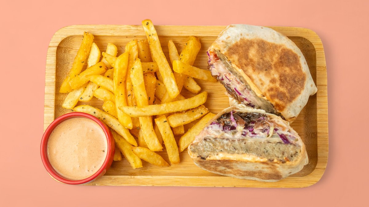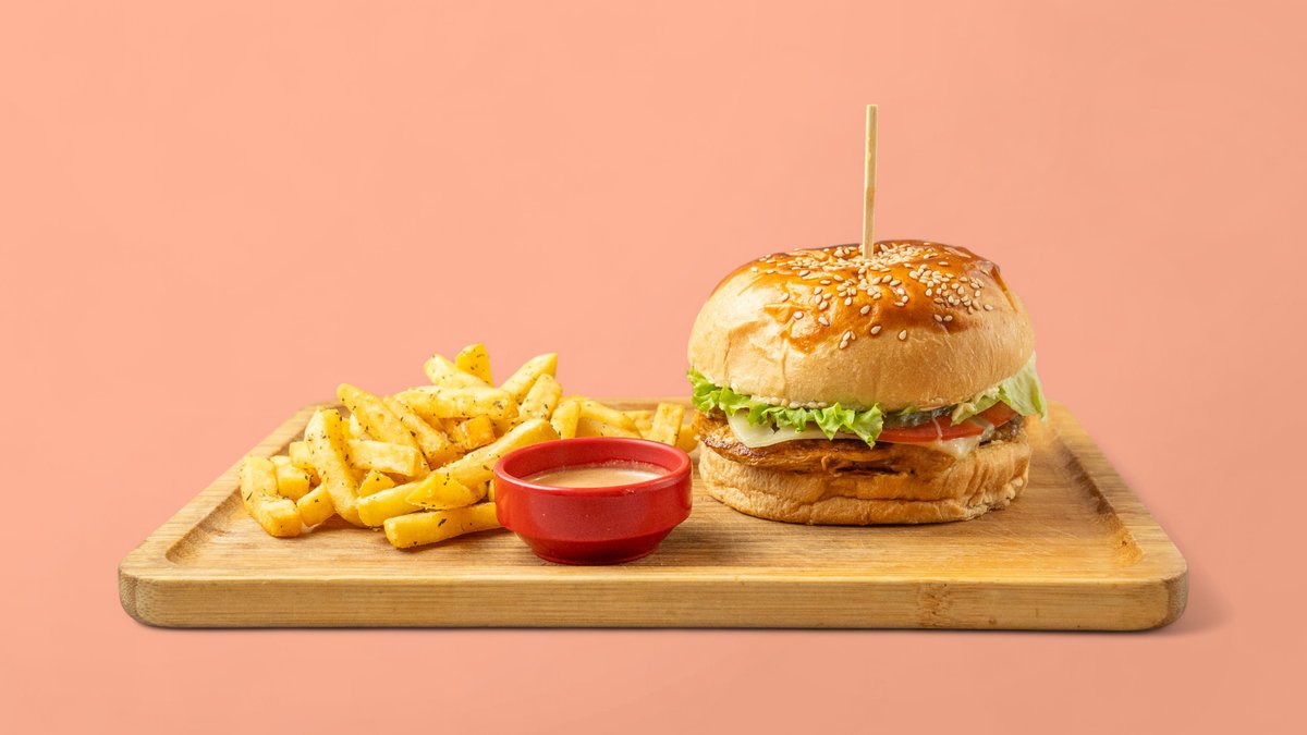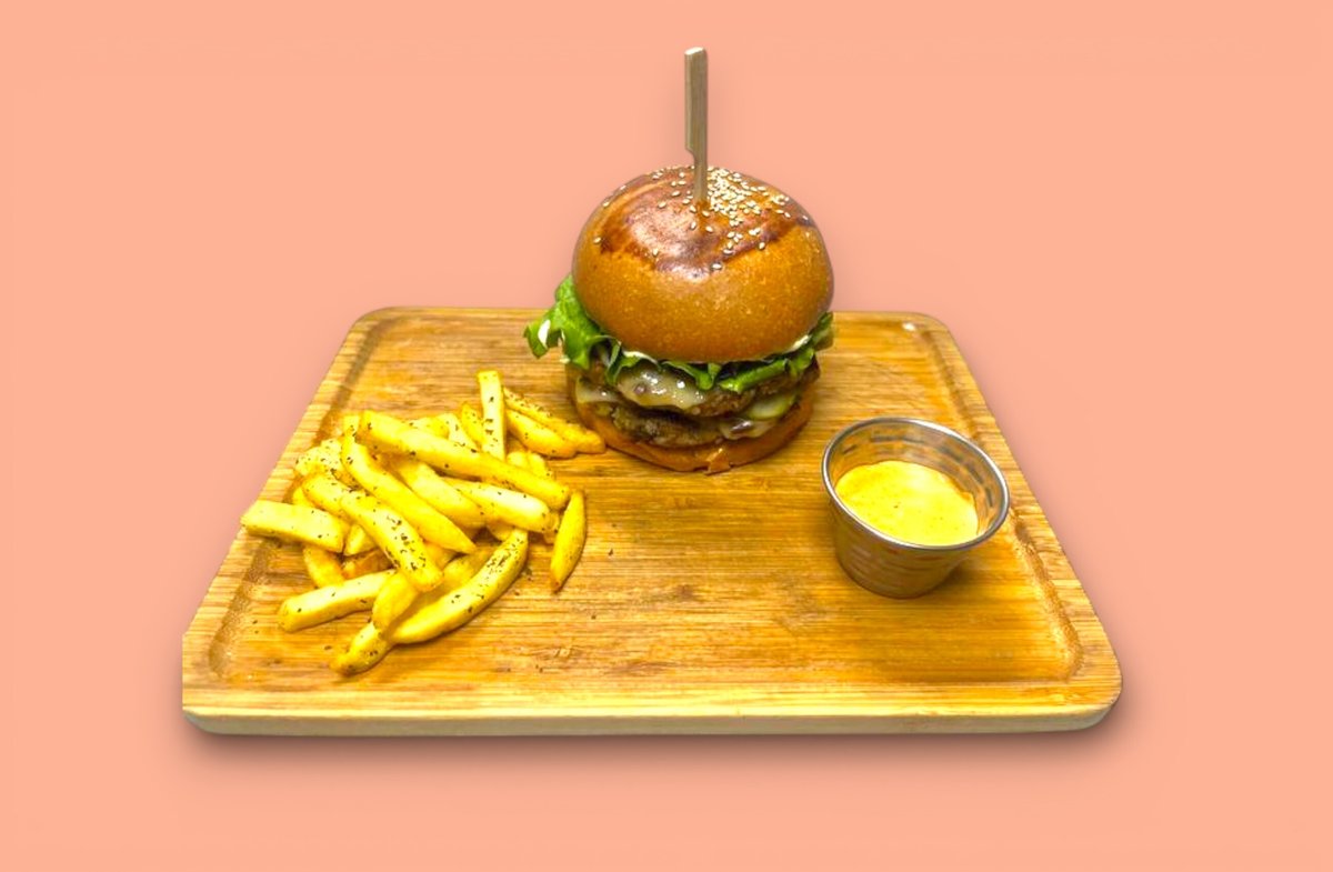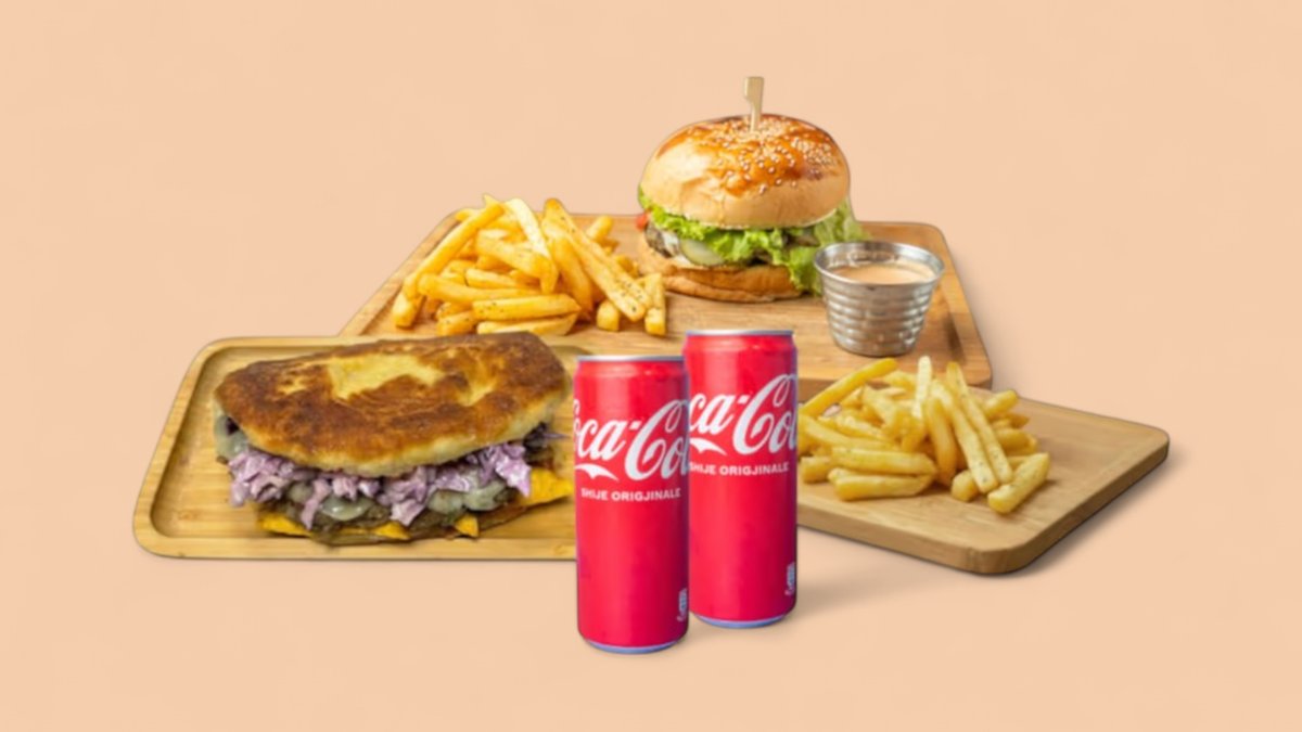 1x Burger Hamesi, 1x Crispy Qofte, 1x Patate, 2x Pije