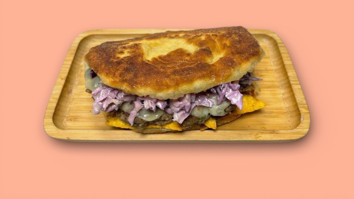 Pite, pule, djathë guda, kastravec, sallatë, nachos