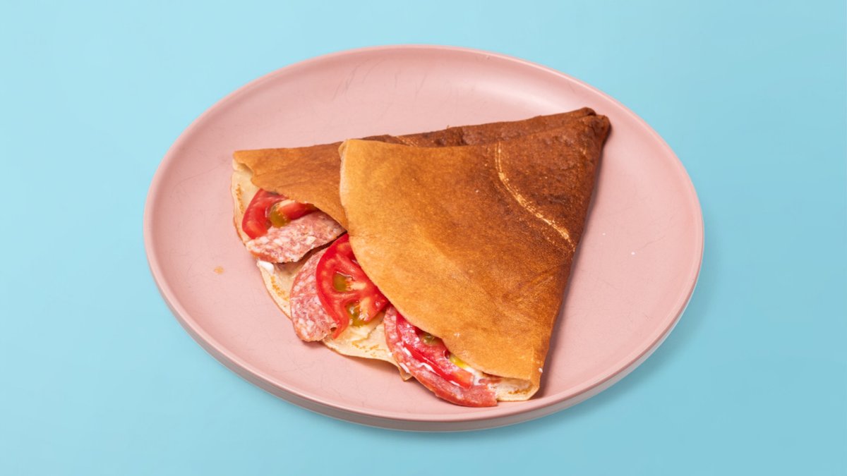 Djathë gouda, salçiçe milaneze, domate, krem djathi