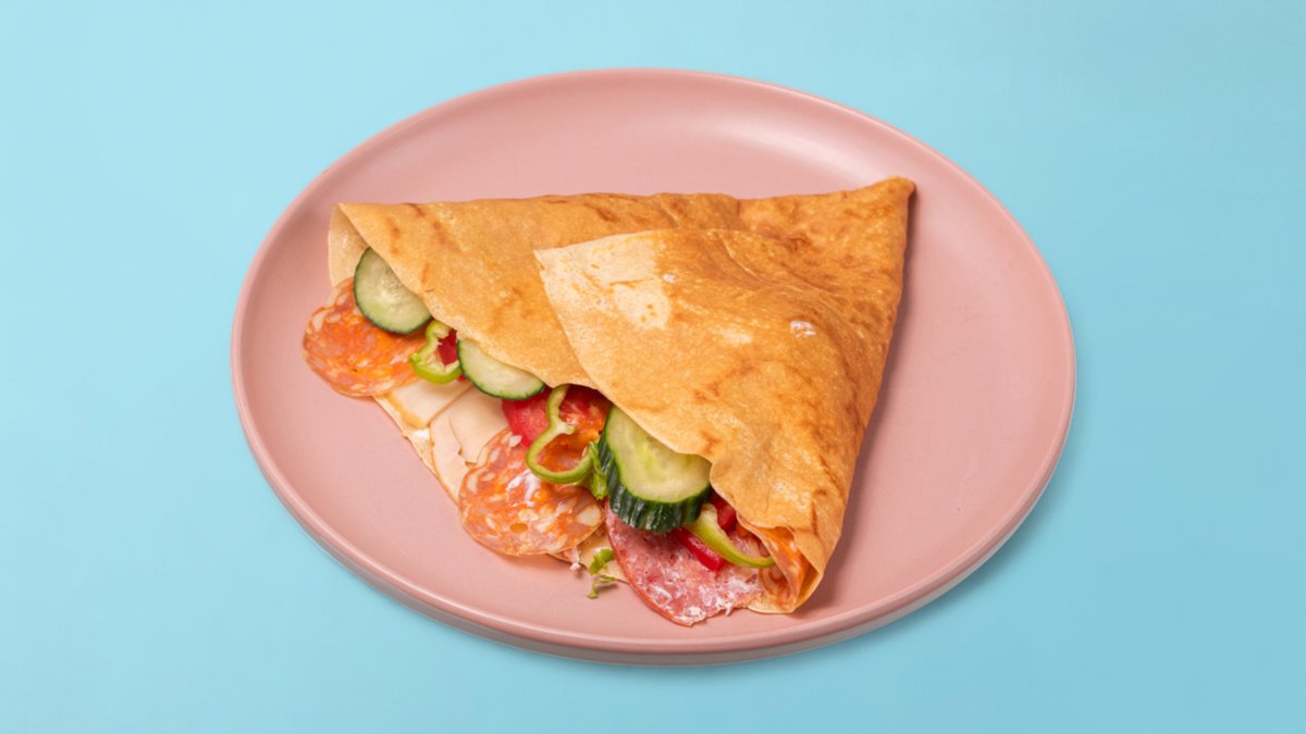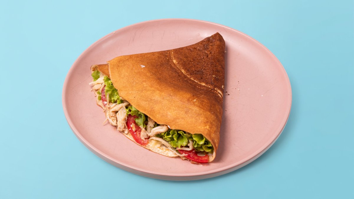 Djathë gouda, fileto pule, domate, sallatë jeshile, krem djathi
