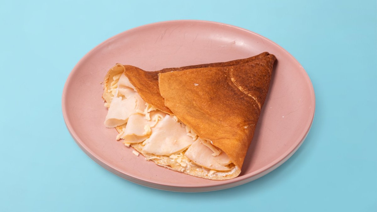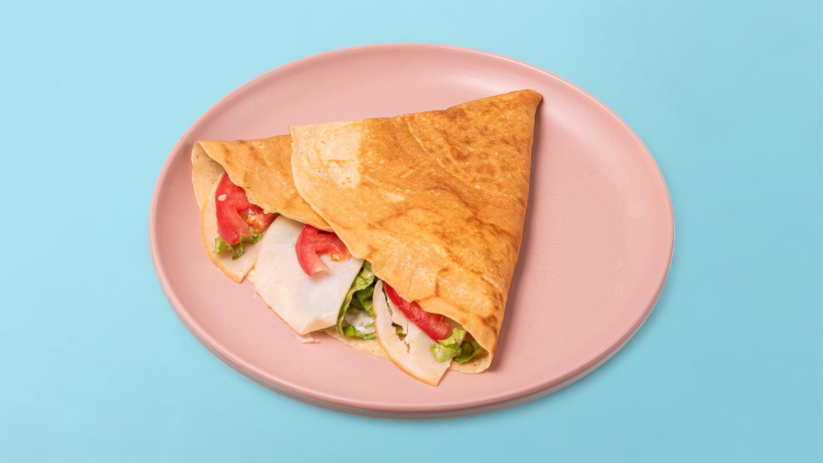 Djathë gouda, proshutë pule, domate, sallatë jeshile, krem djathi