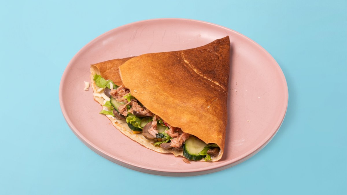 Djathë gouda, ton, domate, ullinj, sallatë jeshile, krem djathi