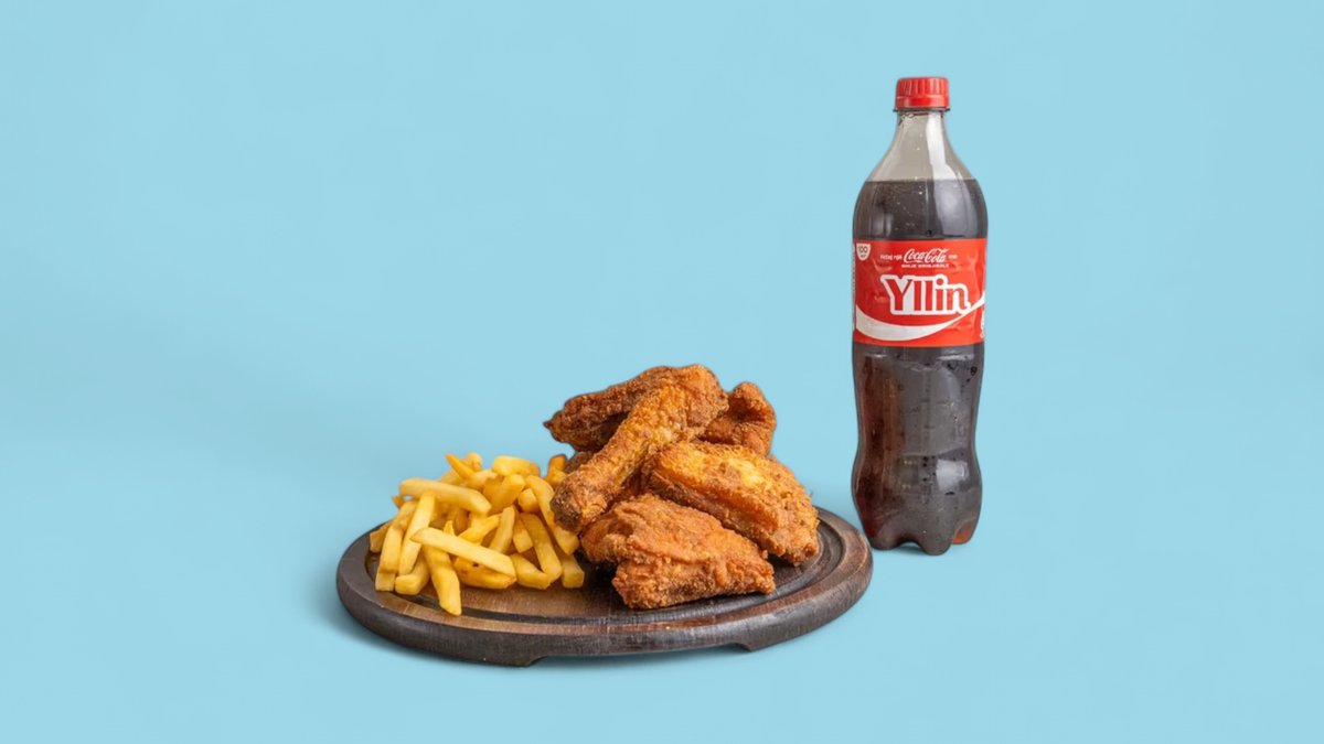 6 pieces of chicken, 3 potatoes, 1 family cola