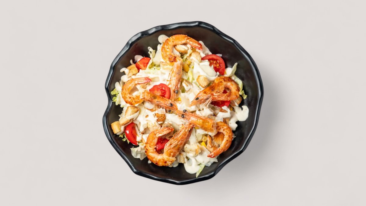 Sallatë ajsberg, grana, salcë cezar, karkalec, misër, kubeti, pomodorini
