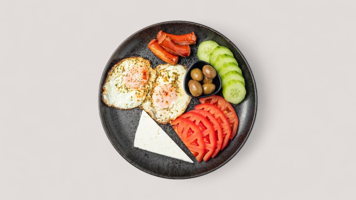 Vezë, djath, domate, kastravec, salcice
