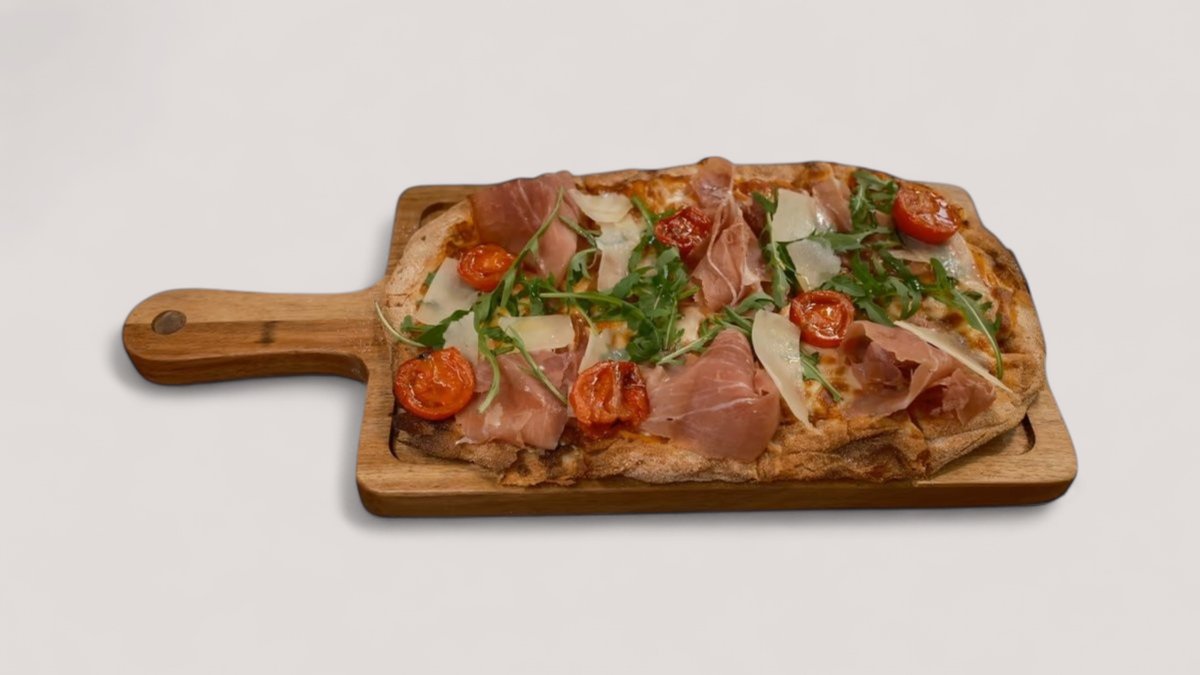 Mozzarella, proshutë krudo, rukola, pomodorini