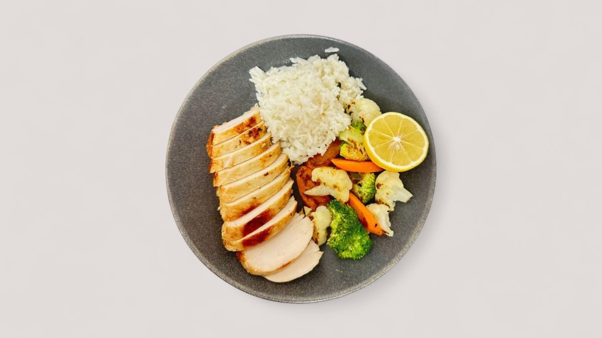 Fileto pule, oriz basmati, salce chicken dresing, brokoli, karrota, salce soja