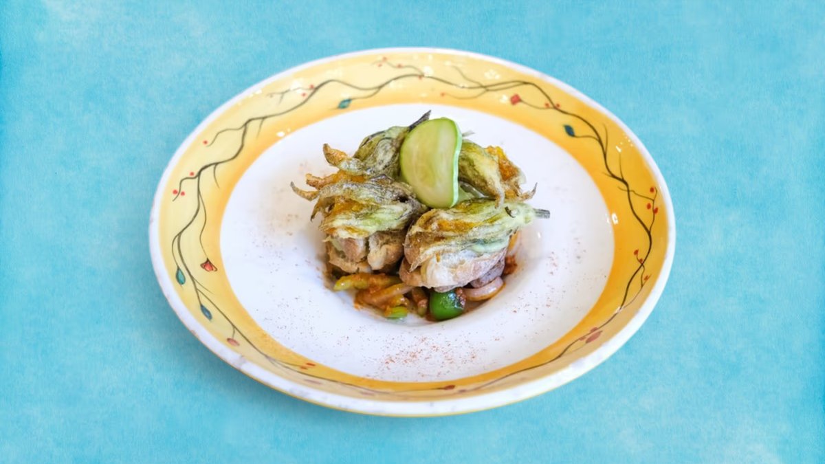 Veze poche, salcë domate, speca, qepë, krem djathi, bukë e thekur