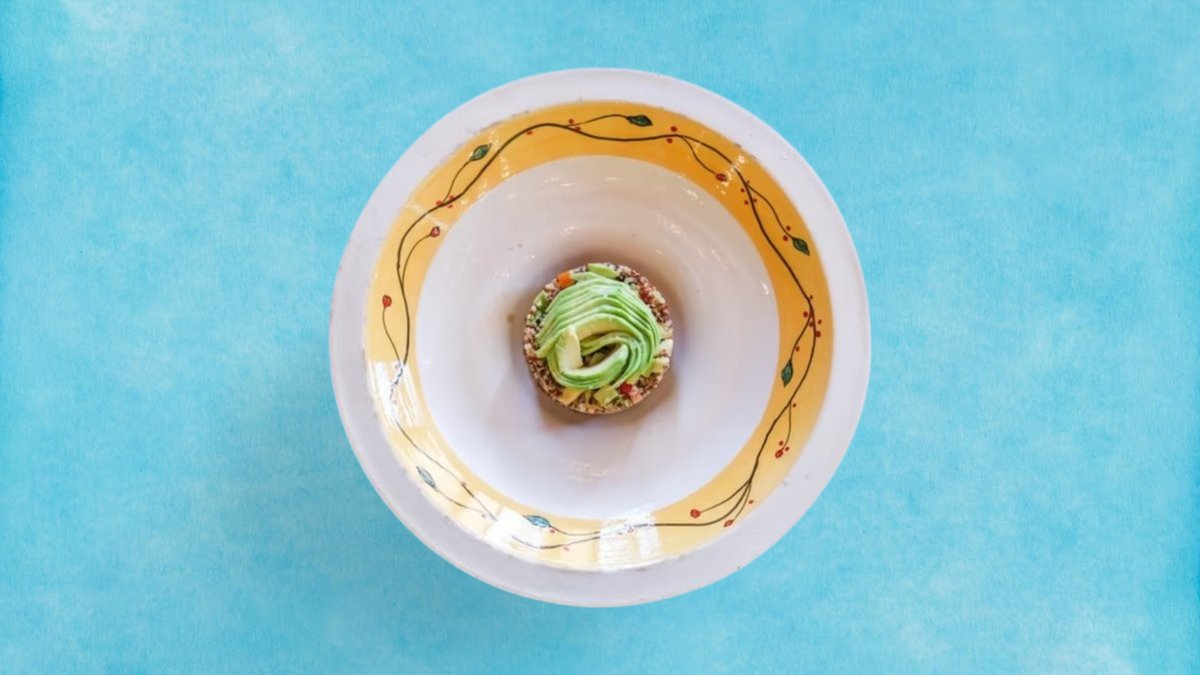 Bukë thekre, avokado, domate, kastravec, spinaq, vaj ulliri