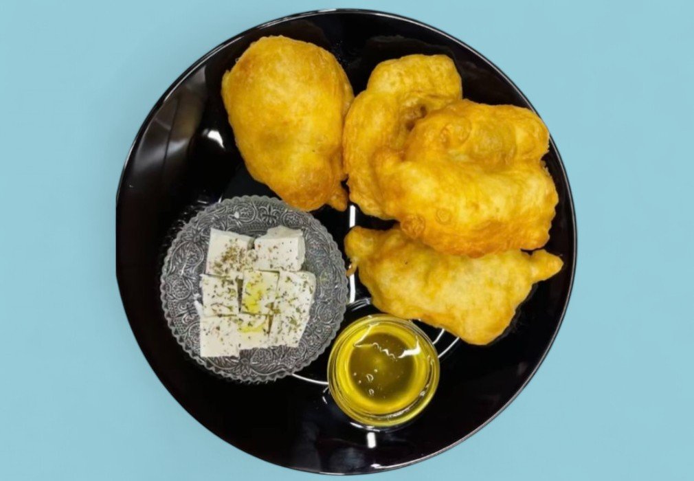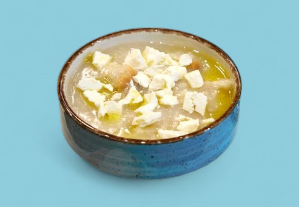 Trahana, djathë i bardhë, ullinj, bukë e thekur