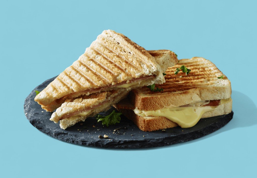 Bukë tosti, vezë, proshutë cotto, djathë edamer