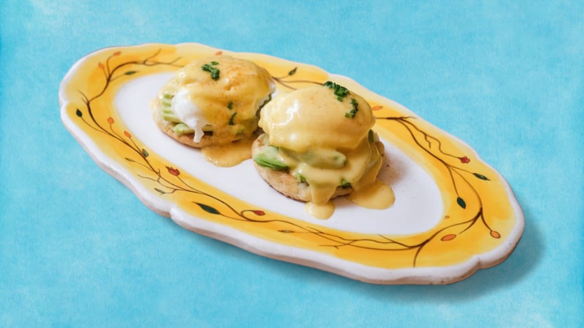 English muffins, vezë poche, pançetë, salcë hollandeze