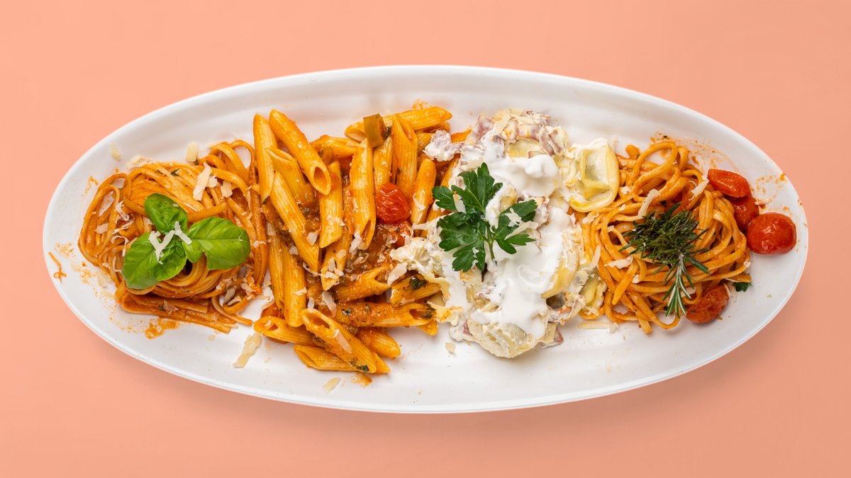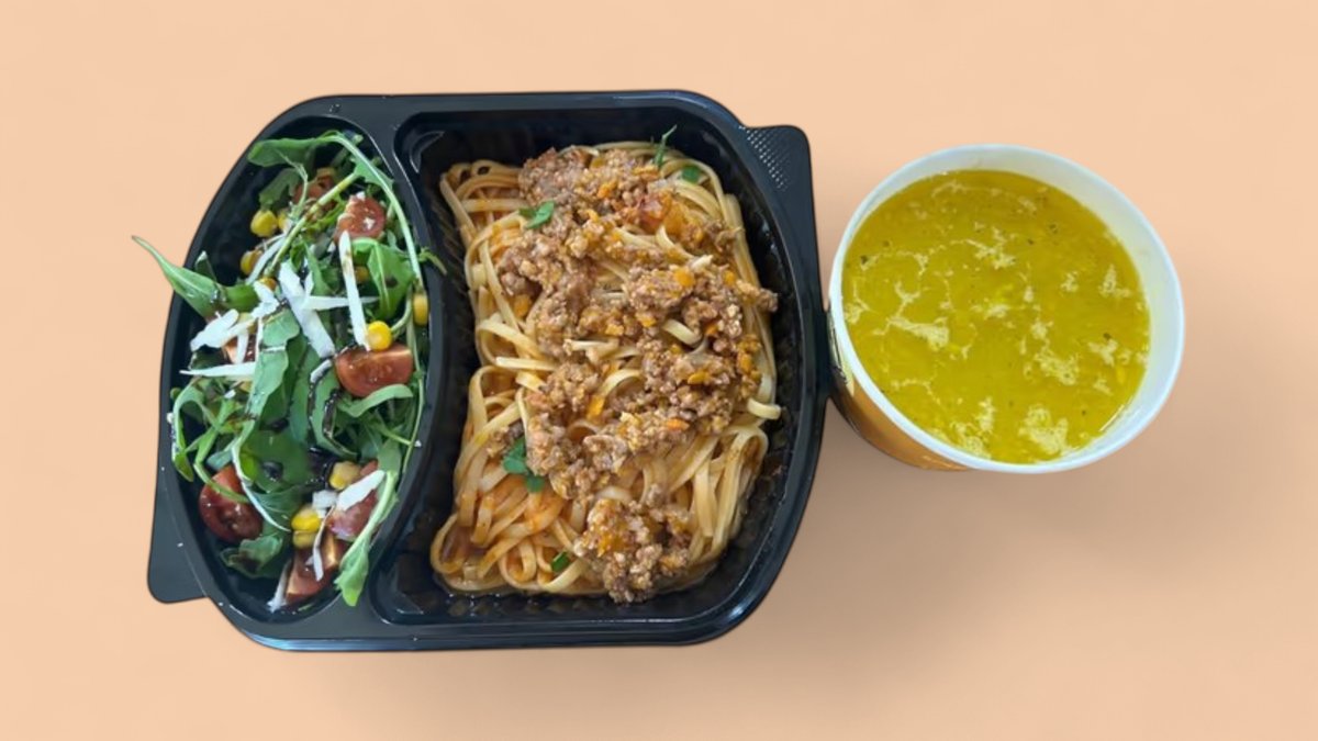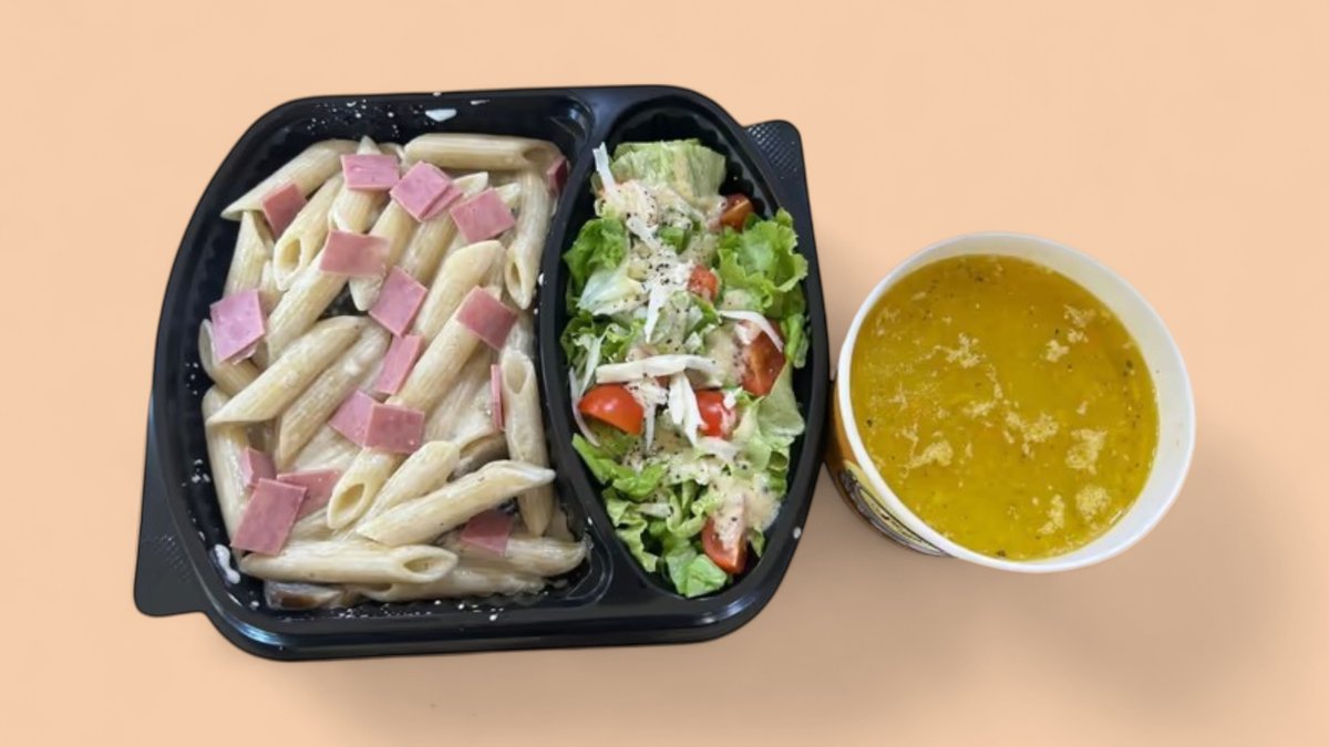 Pene me pana & proshutë, sallatë çezar, supë pule