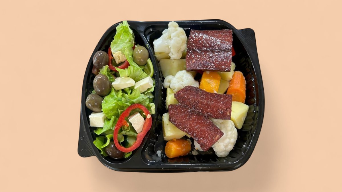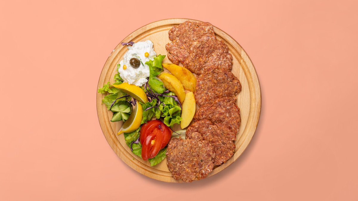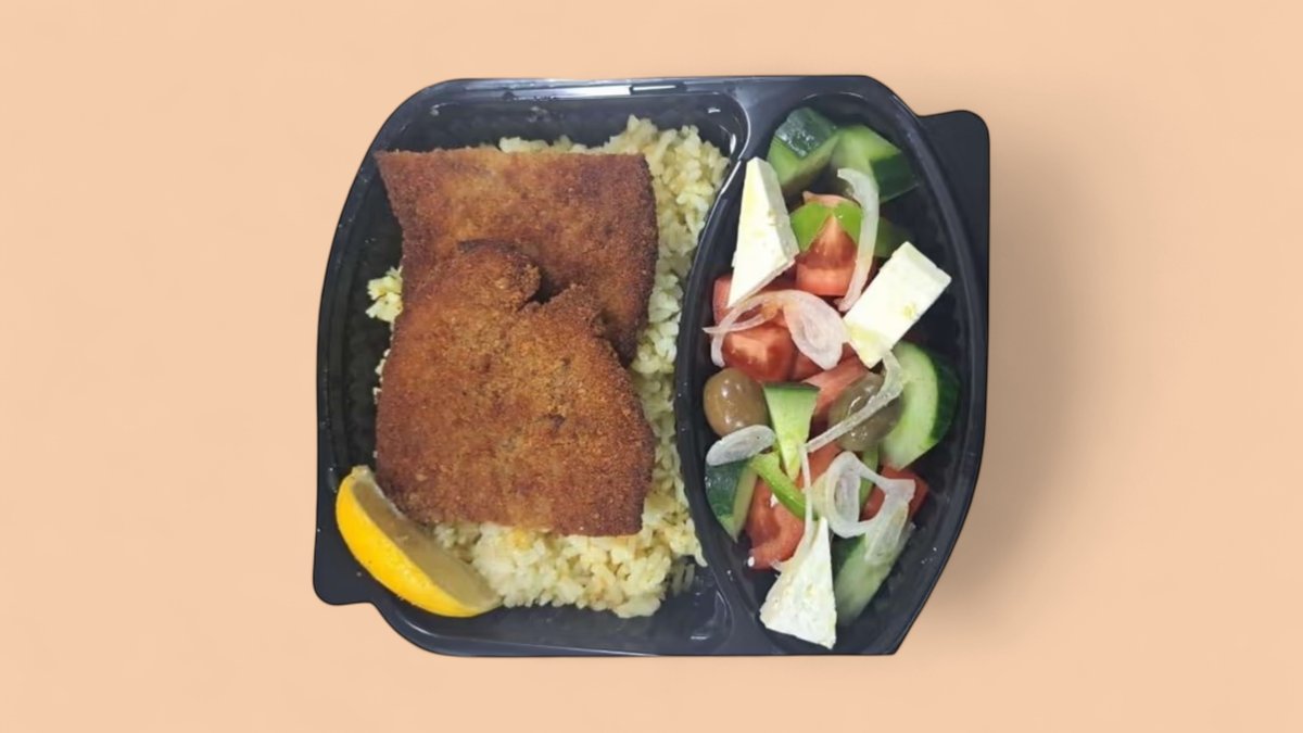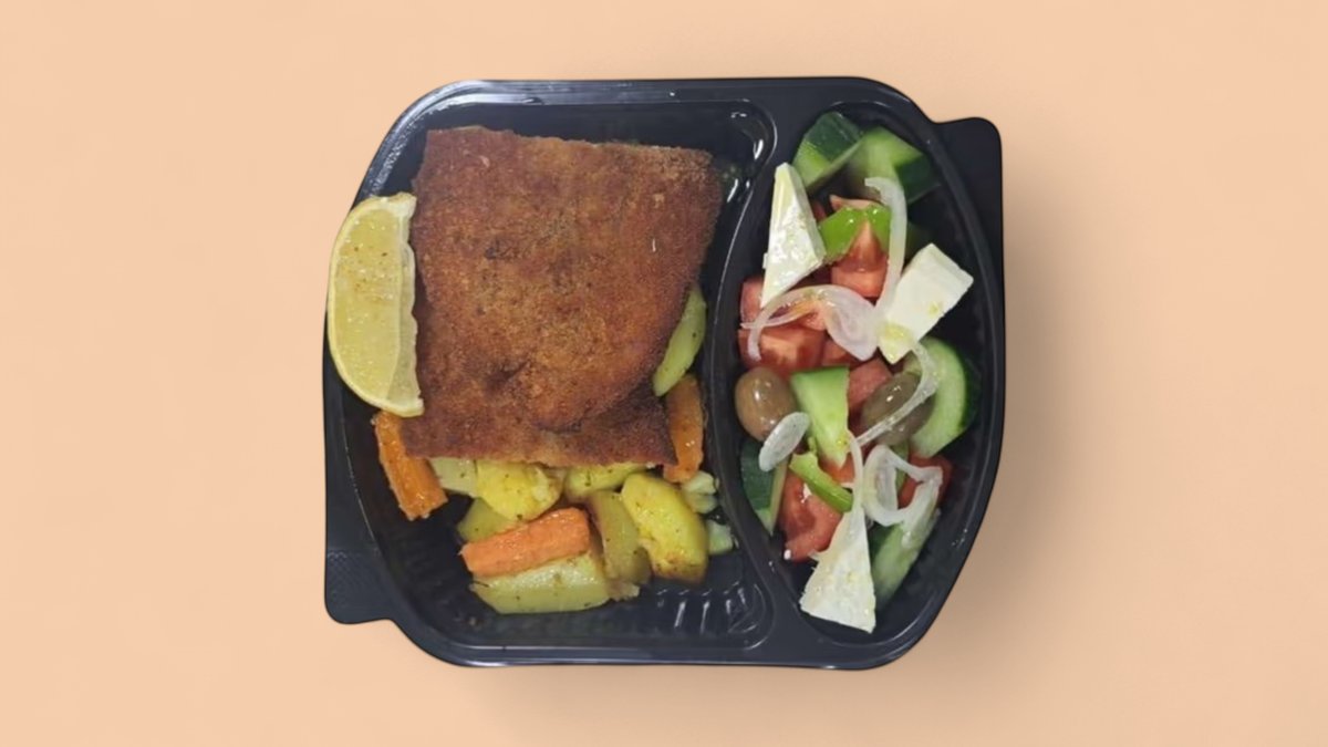 Sallatë Greke me Patate Furre & Kotoletë Pule