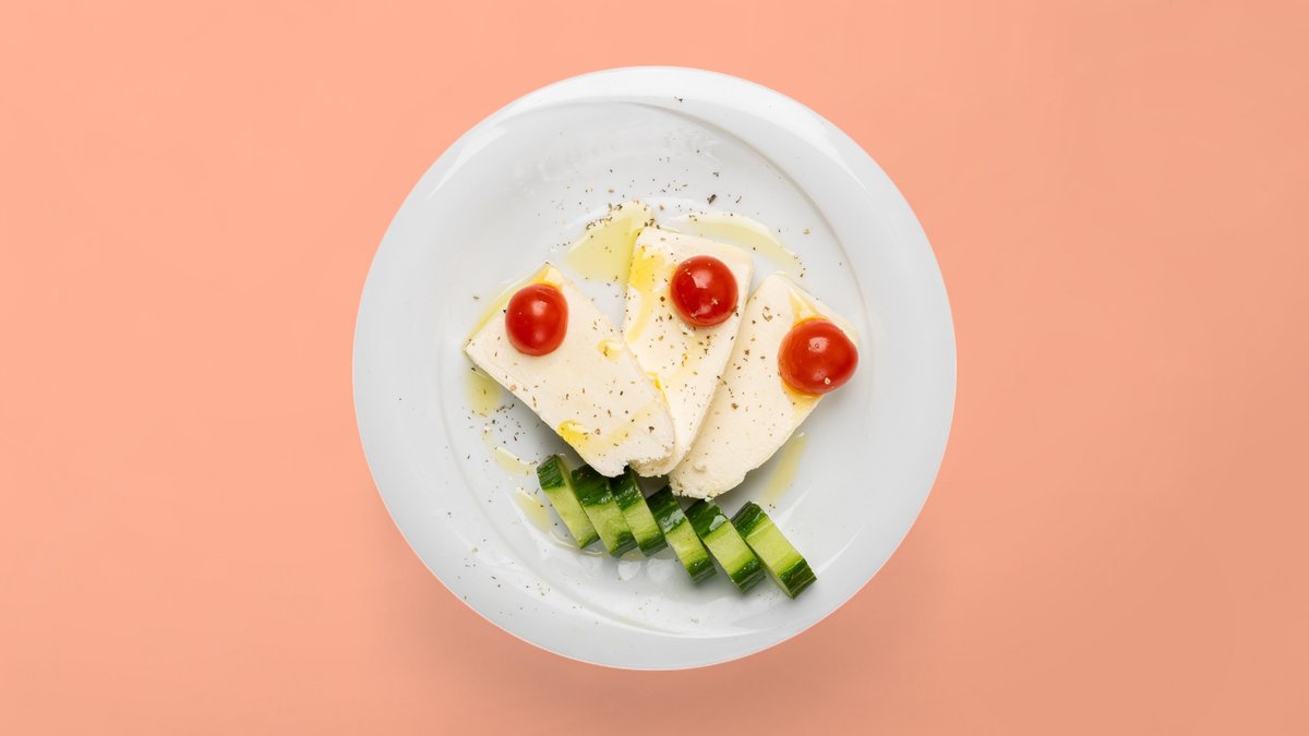 Djathë dele, djathë lope, proshutë cotto, gjalp, ullinj, domate, kastravec