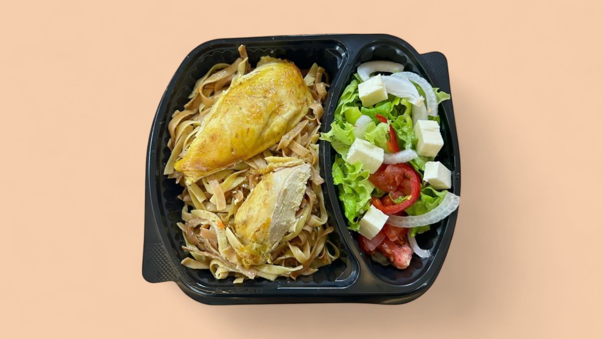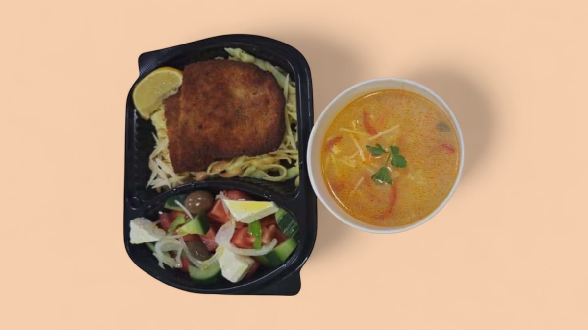 Sallatë Greke me Supë Pule & Jufka me Kotoletë Pule
