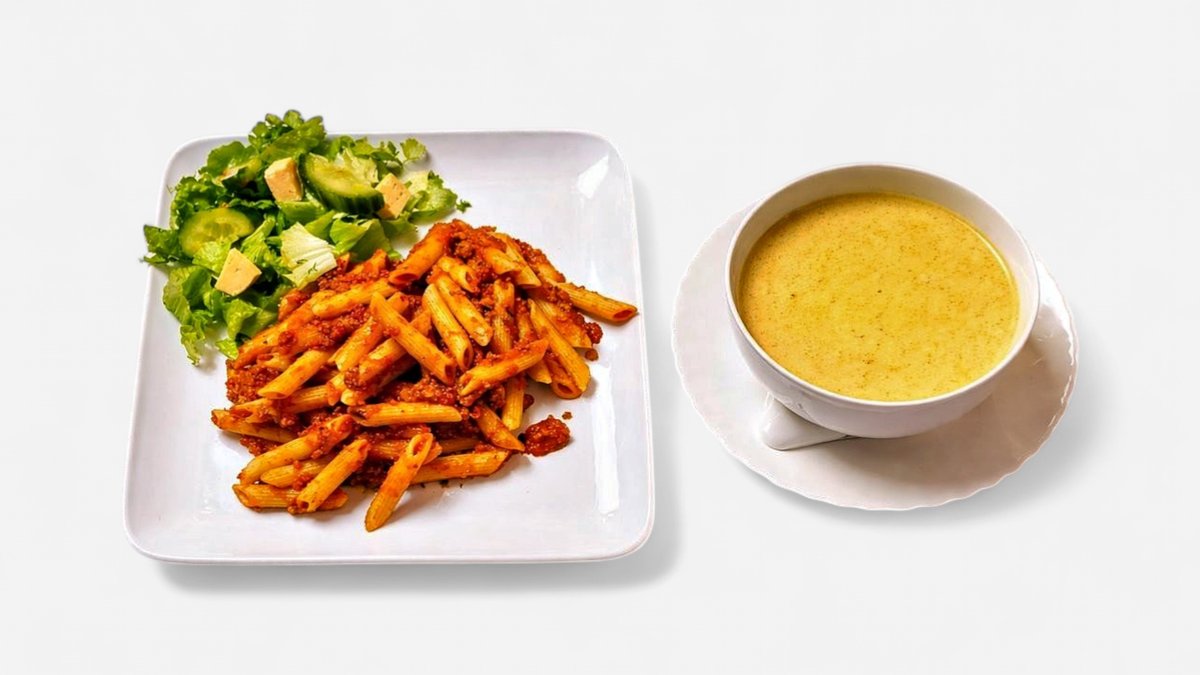Supë Ditore, , Penne Pomodoro, Sallatë Jeshile