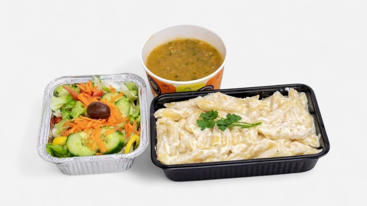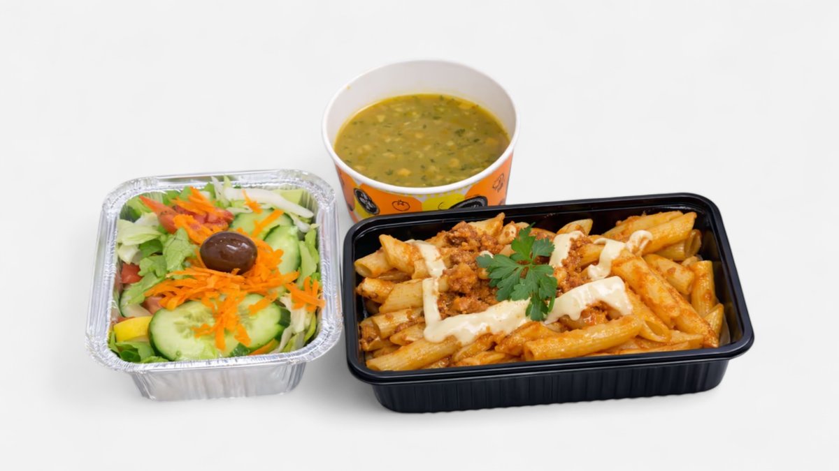 Penne me Gjiz , Sup me Mish Vici , Sallat Mix
