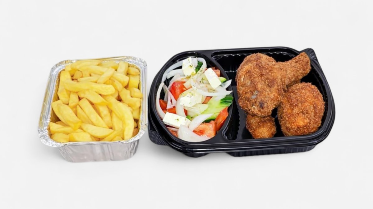 Kofsha Pule te Skuqura , Sallat Fshati , Patate Friture