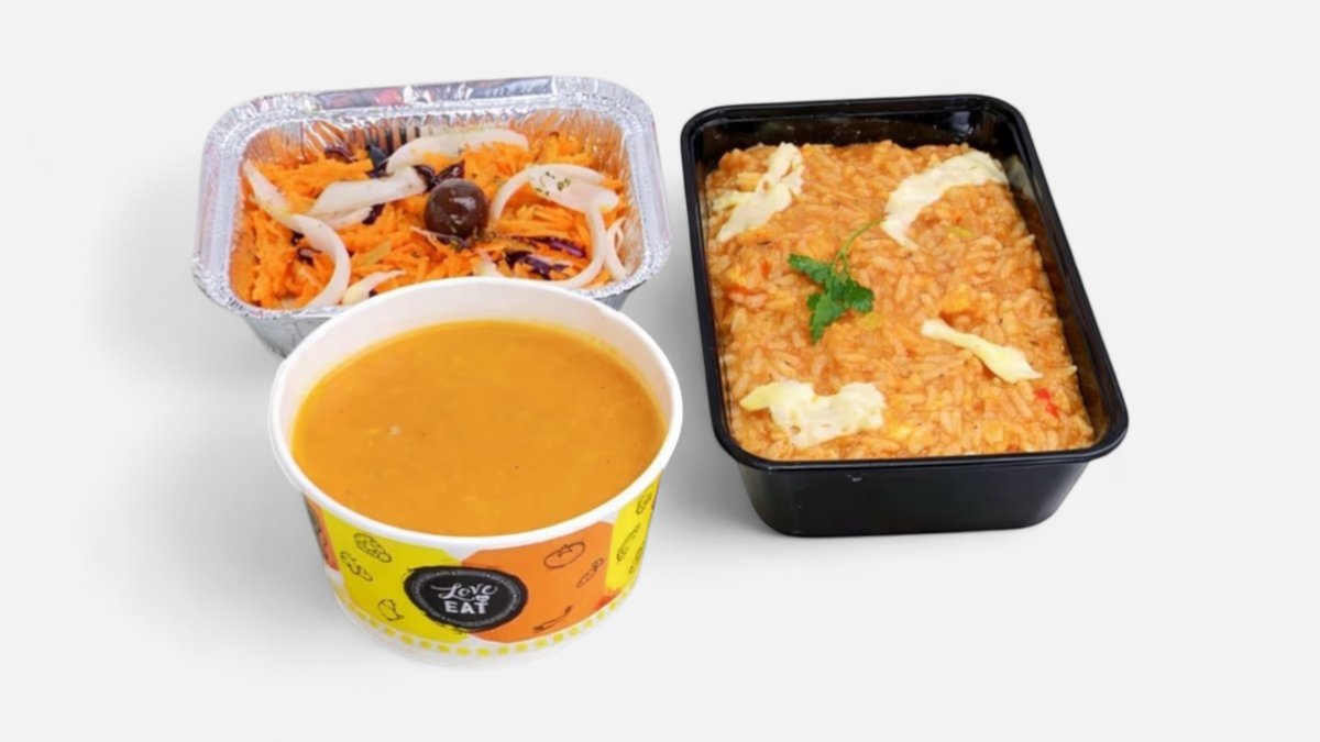 Supë Ditore, Fileto Pule, Salcë Curry, Sallatë Mix